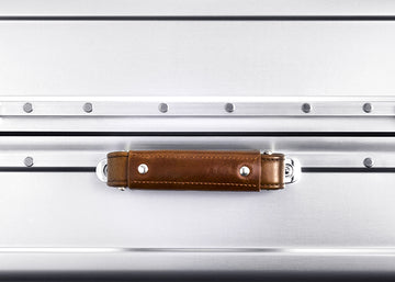 The top and side handles of the case are from full-grain Italian leather. The leather comes from an independent tannery, based out of the small town of Chiampo in the Italian region of Veneto.